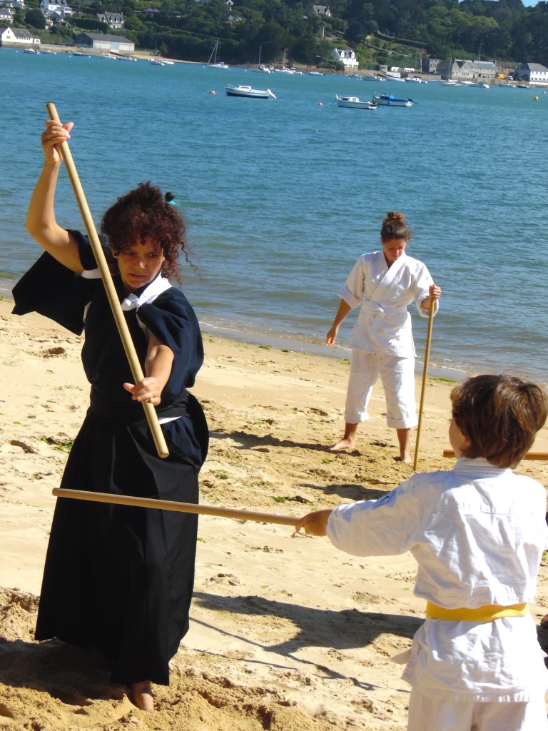Après la pause, nous passons au travail des armes, jo, boken sous la forme de katas effectués seul ou en binôme.